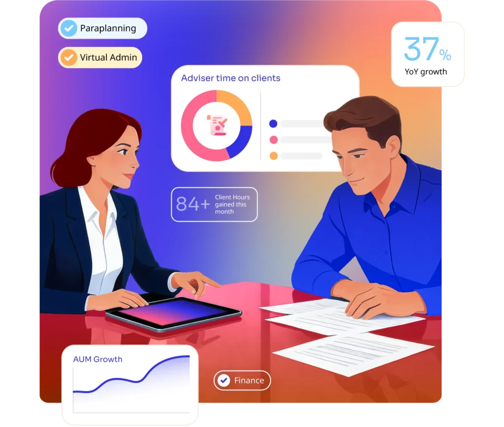 We provide paraplanning and virtual practice admin services to financial advisers and financial advisory firms across the UK, helping them focus on clients and grow their practice.